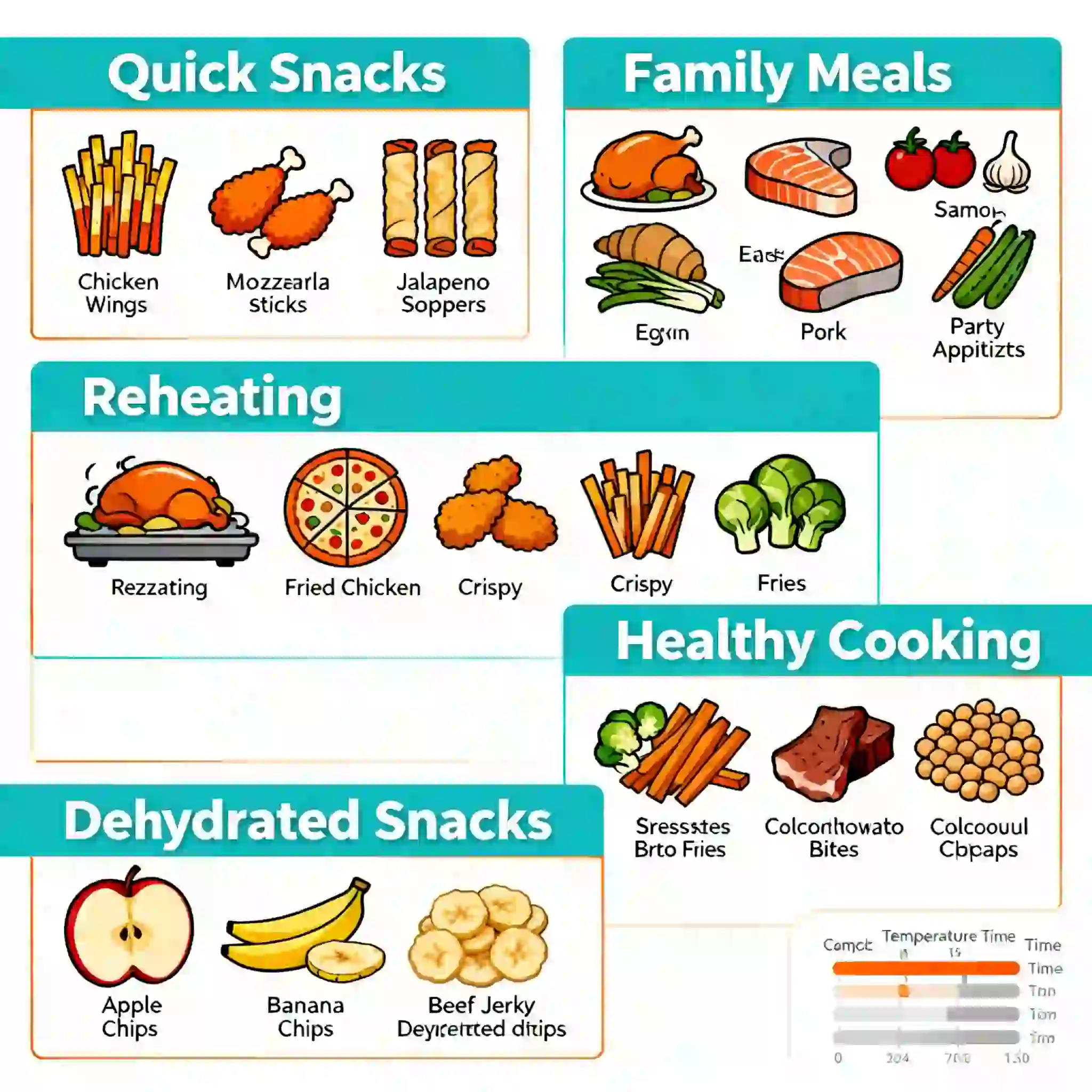 - Air Fry mode — for crispy fries, wings, and snacks