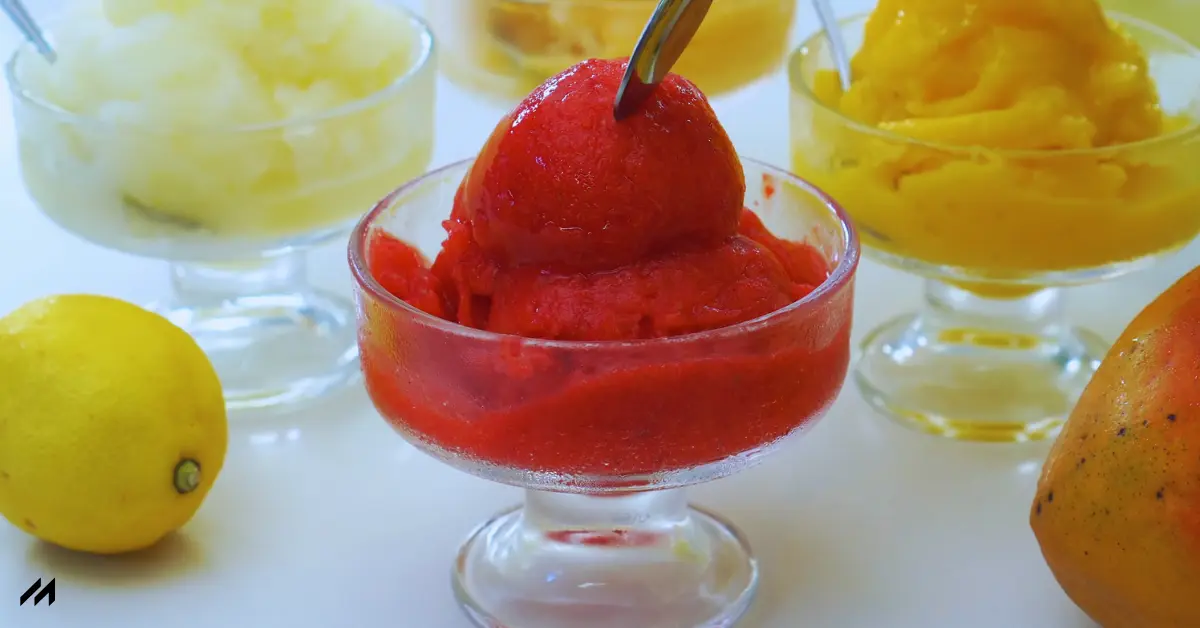 For sorbet, combine 2 cups of frozen fruit, half a cup of coconut water or almond milk, and maple syrup in a blender. Mix until smooth, then freeze for 24 hours. Process in the Ninja Creami thereafter.