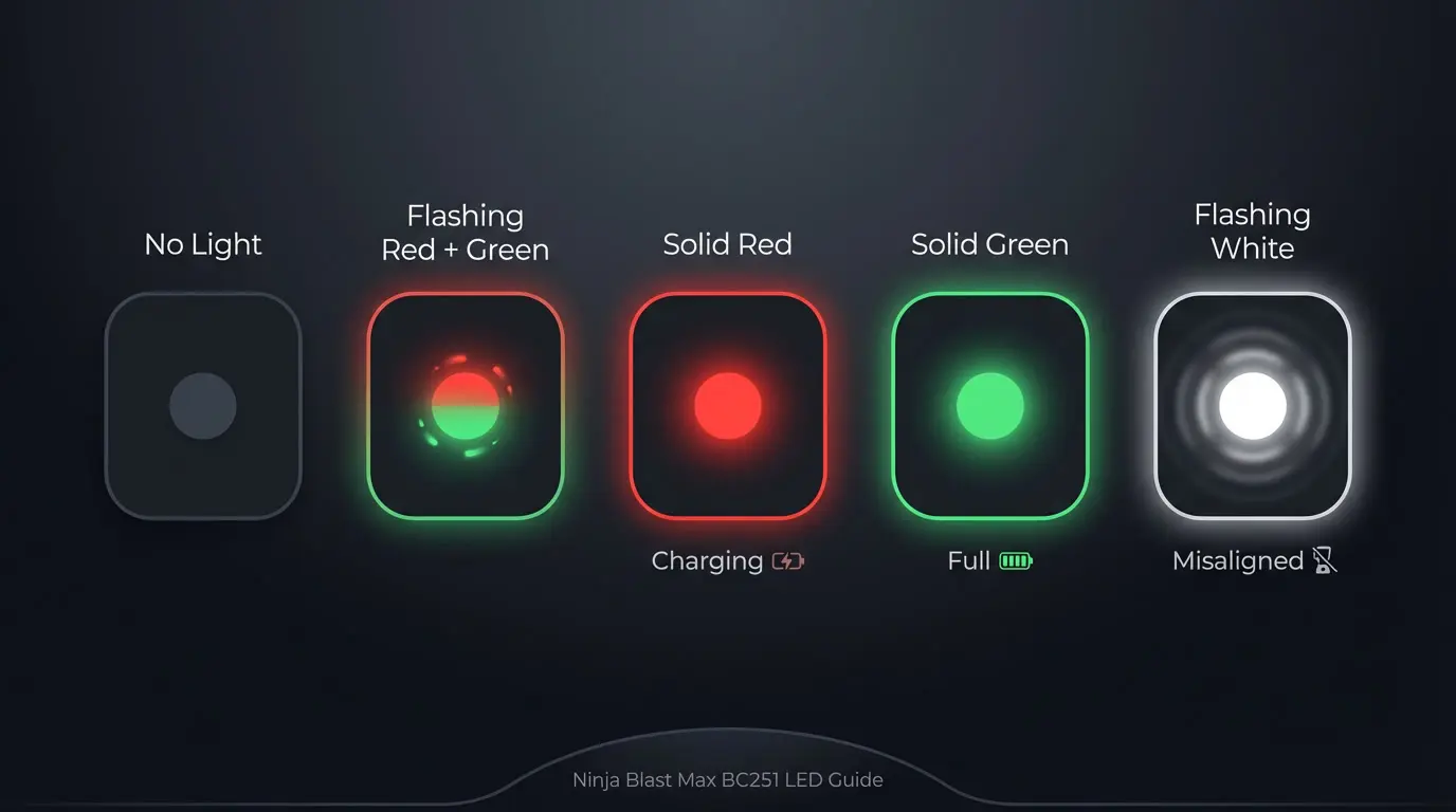 The LED status interface on your Ninja Blast Max talks to you. You just need to know the language. The official Ninja BC200/BC250 troubleshooting guide from SharkNinja documents each LED state, and the breakdown below draws directly from that source.